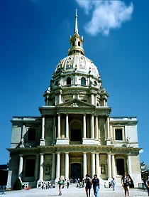 - a pour modèle la basilique Saint Pierre de Rome - il y a sous le dôme, depuis 1840, le sarcophage et les cendres de Napoléon (mort à St. Hélène, 1821) dans une crypte creusée sous Louis-Philippe (1830-1848) pour exaucer le désir testamentaire de Napoléon de reposer sur les bords de la Seine |