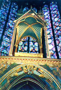 - était pour les rois (à l'étage des appartements du roi) - est l'endroit où il y avait les reliques - a les statues des 12 apôtres - a de grands vitraux (60 mètres carrés) - les vitraux racontent une histoire: - on peut lire ces histoires quand on regarde les vitraux: |